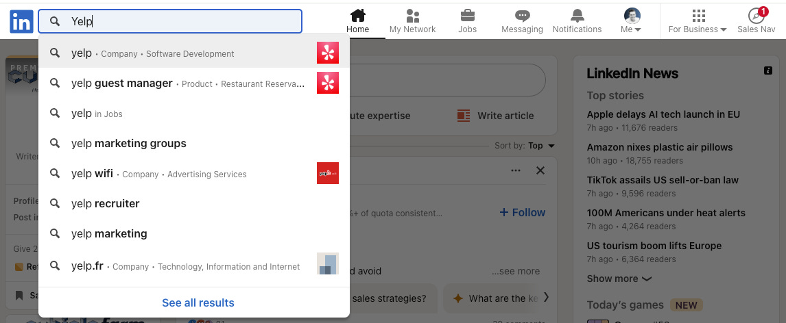1. Search “Yelp” on LinkedIn